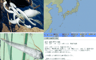 天気のあれこれ 地震前兆 7月4日に松江市島根 町沖の定置網に リュウグウノツカイ がかかる 6月末には隠岐の島町で ダイオウイカ が漂着 科学的には迷信という扱いだが どちらも地震の前兆という説もあるだけに要警戒